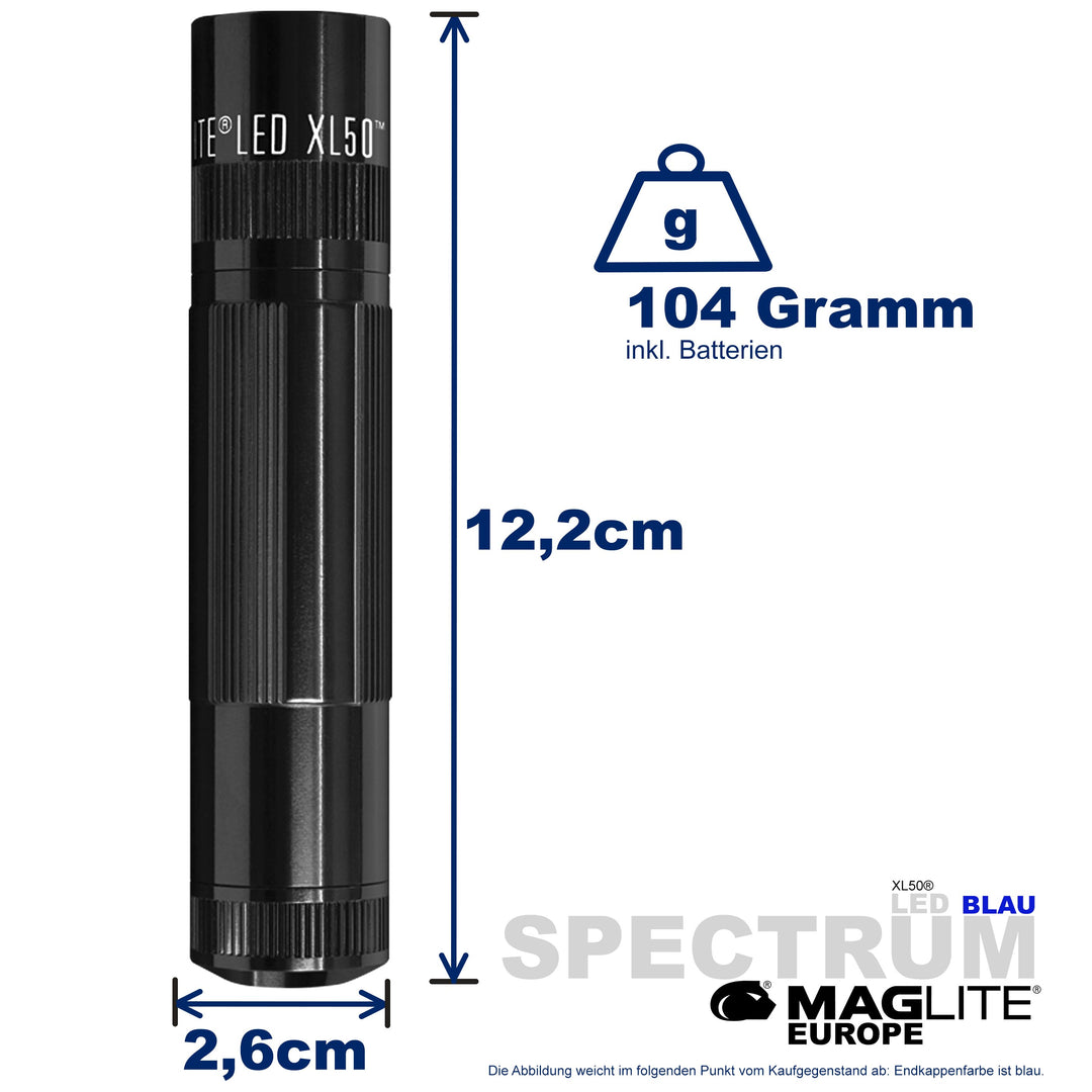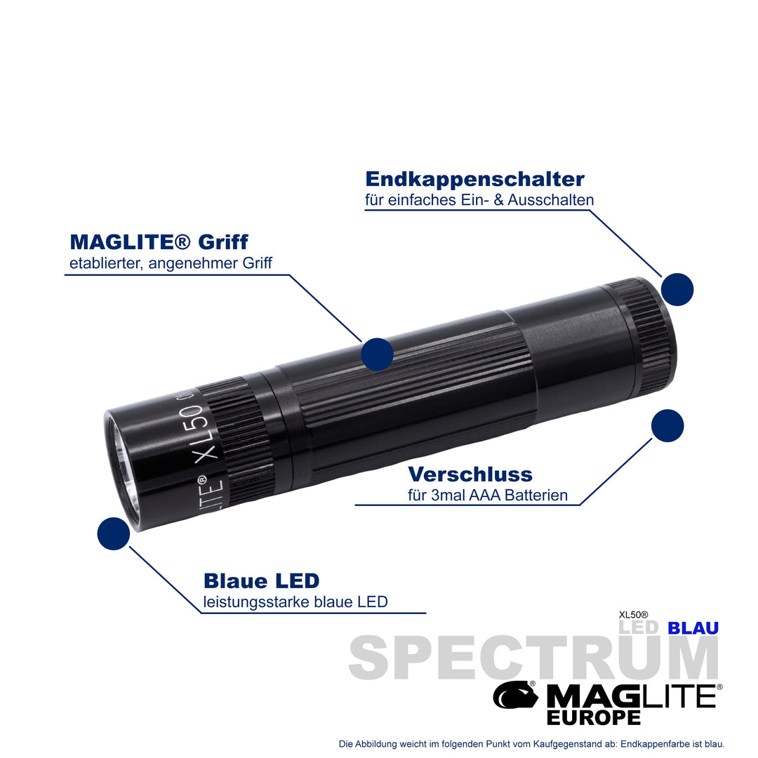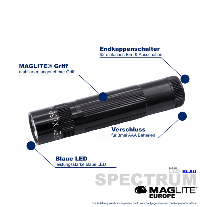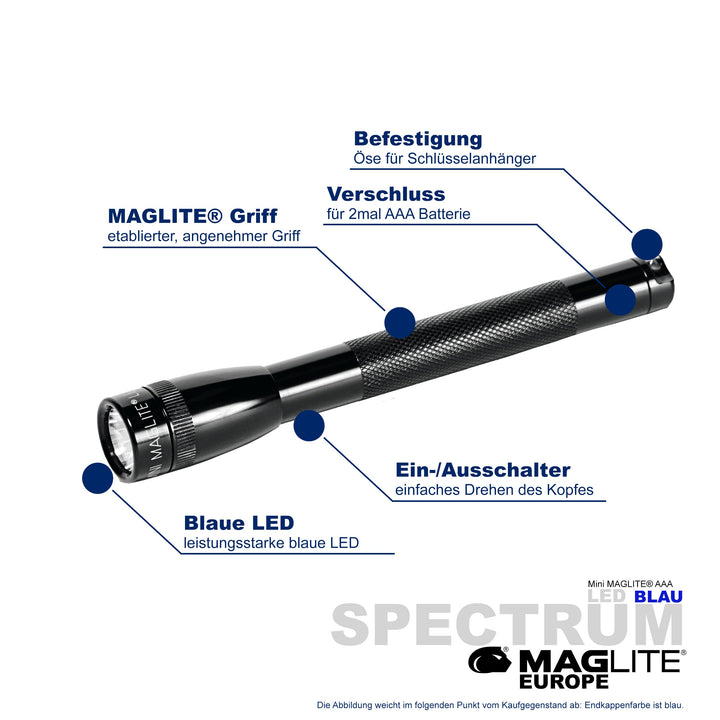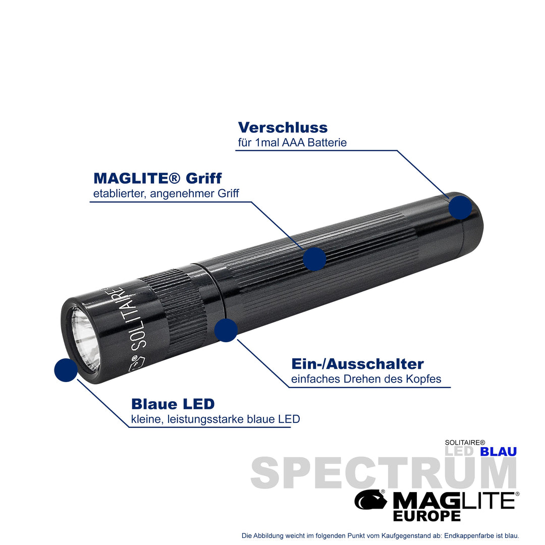 Maglite® Spectrum Series™ met blauwe LED heeft een blauwe LED-lichtstraal.