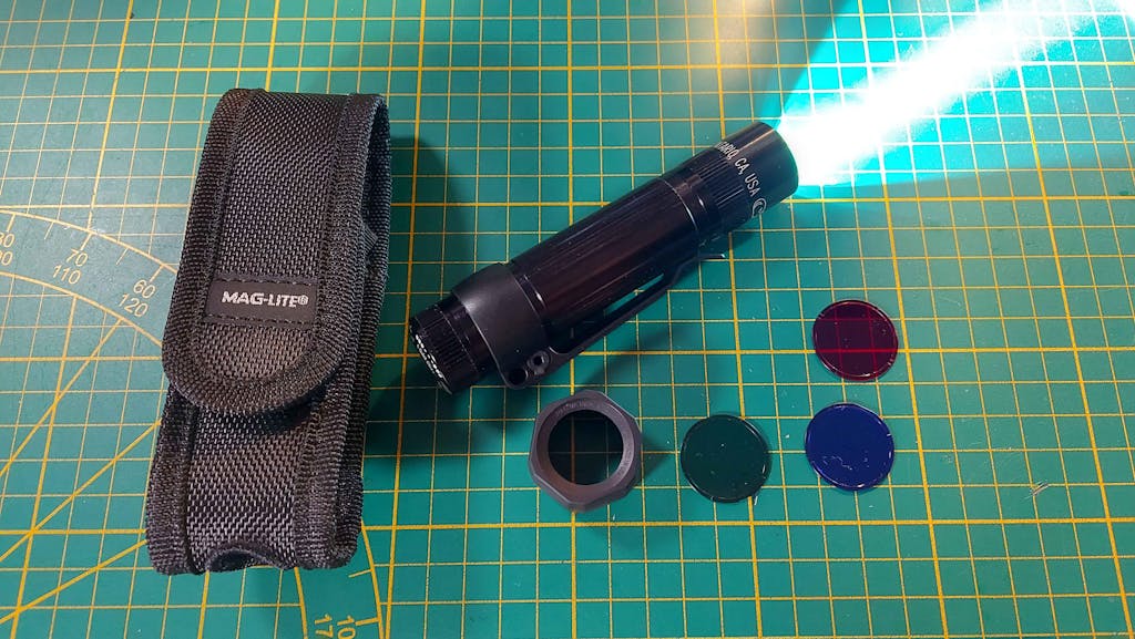 - 1x uppsättning färgade linser (röd, grön, blå)